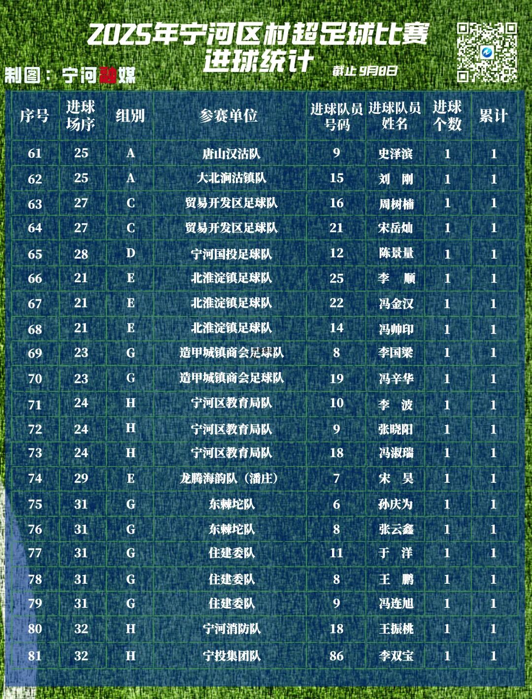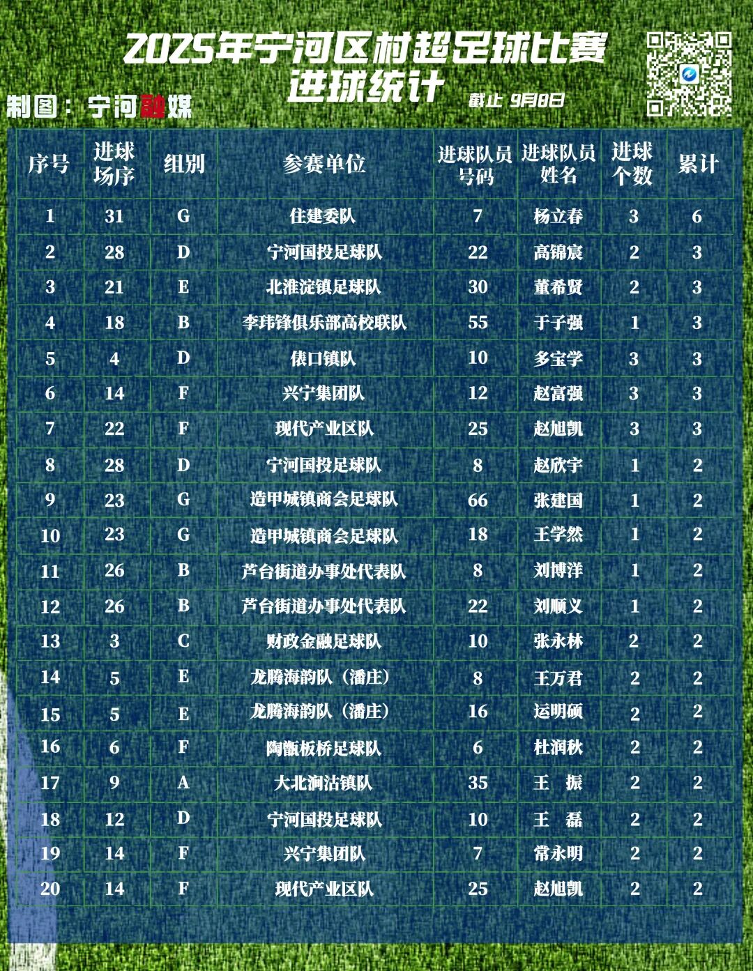 2025宁河“村超”最新比赛成绩及赛程(截至:9月6日)